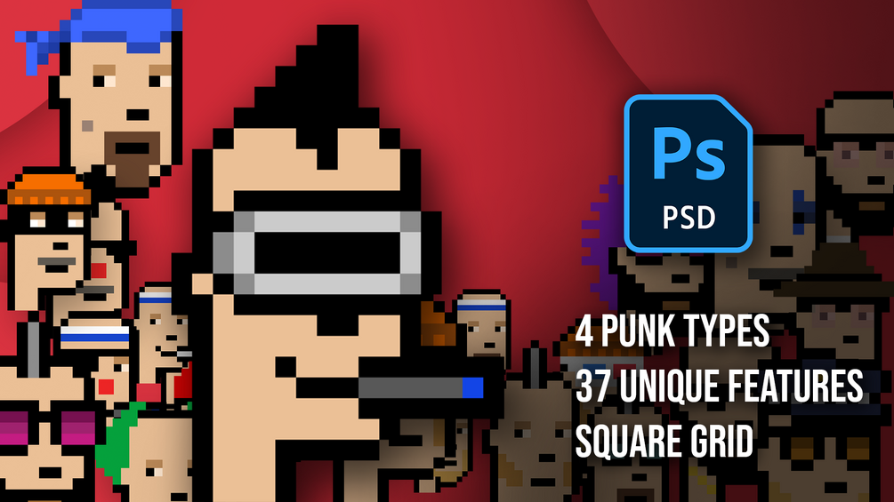 Free CryptoPunk Template + 37 Unique features (.psd)