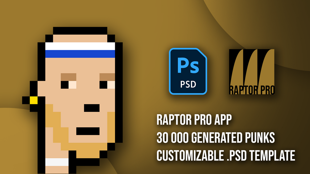Special Bundle: RAPTOR PRO App | 30000 Generated CryptoPunks + Metadata | Fully customizible .psd template