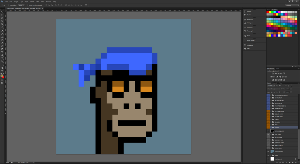• CryptoPunk .psd template file - has 6 Punk types, 40 unique features, the square grid for easy creating your own CryptoPunk